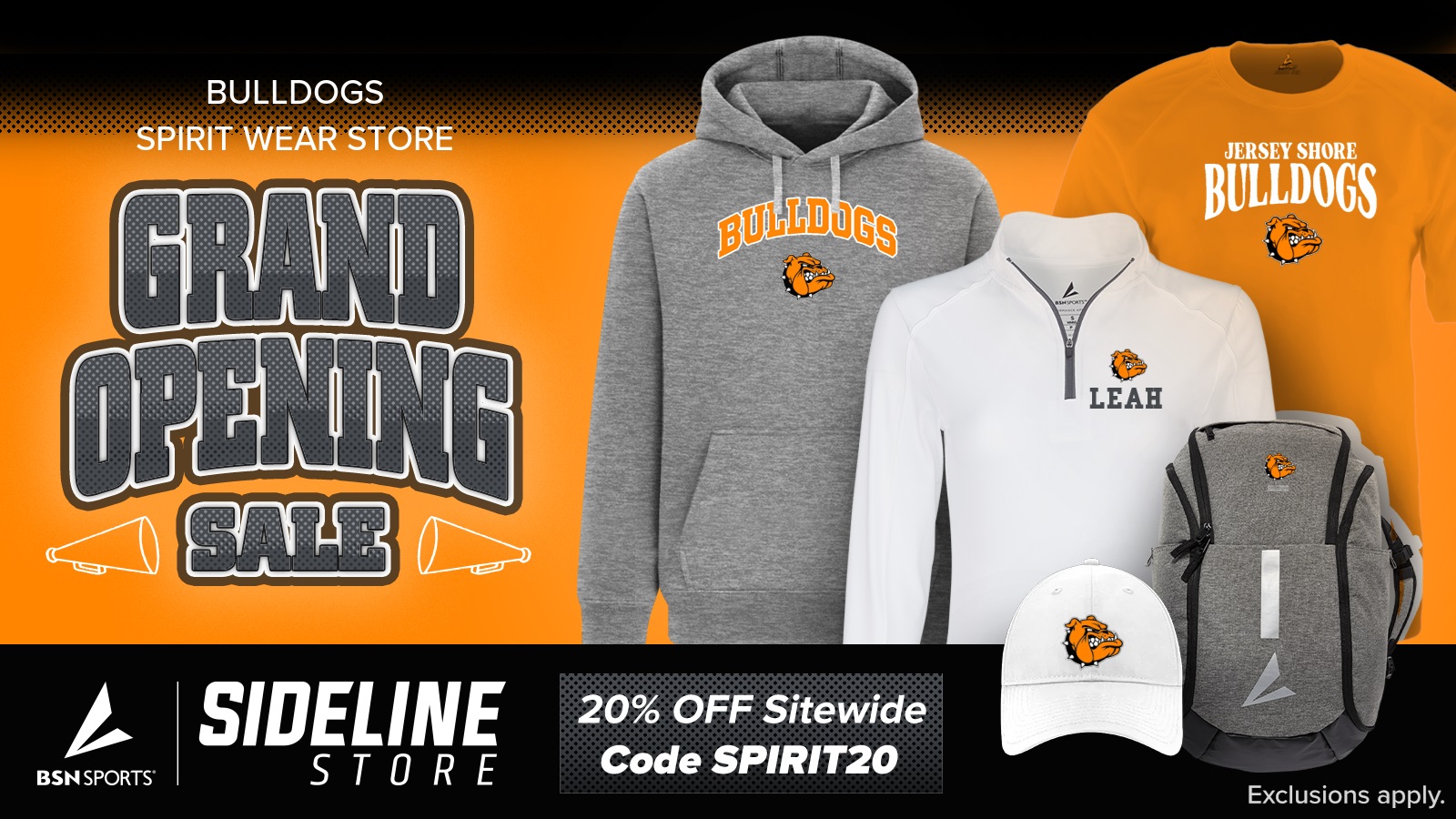 Welcome to Sideline Store, THE place to score personalized spirit wear and accessories from all your favorite brands. For a limited time, enjoy 20% OFF during your Jersey Shore Area Track & Field store’s Grand Opening Sale with code SPIRIT20.